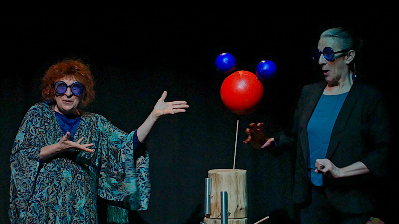 Une pétillante conférence débute le spectacle : atomes, molécules, états de l’eau, interrompue par une lavandière.